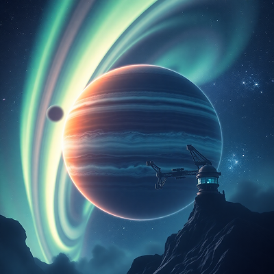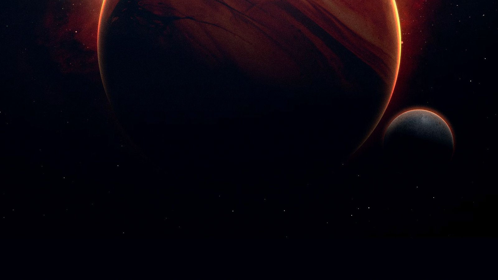 Giant stormy world with moons